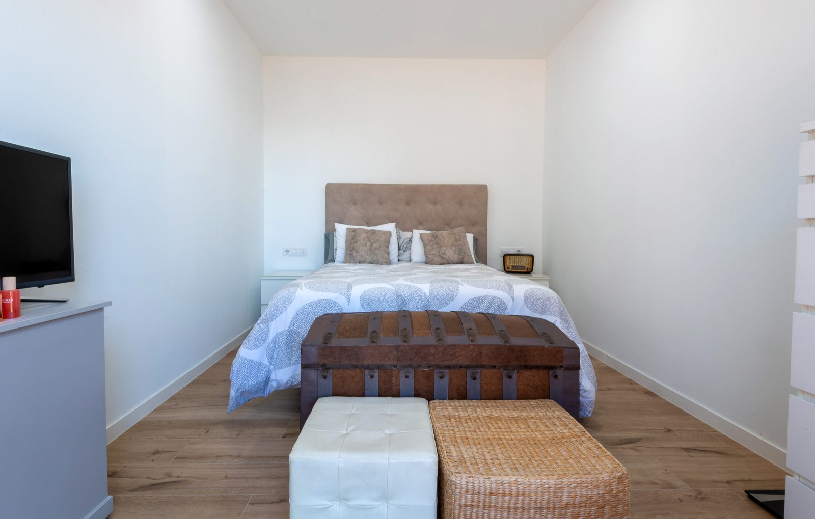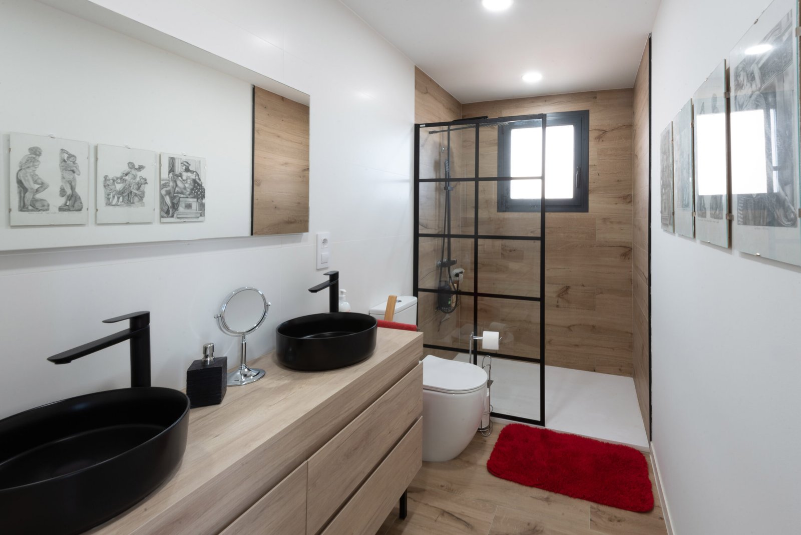 Su distribución combina funcionalidad y confort: tres dormitorios (uno con vestidor y baño en suite), dos baños completos, un amplio salón-comedor con cocina integrada y salida directa al jardín.