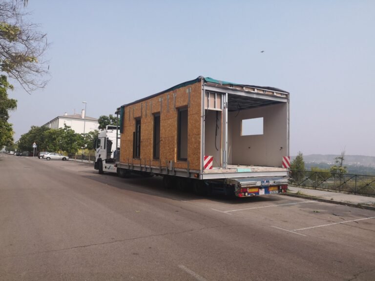 Transporte de módulo pre-industrializado en 3 dimensiones desde fábrica.